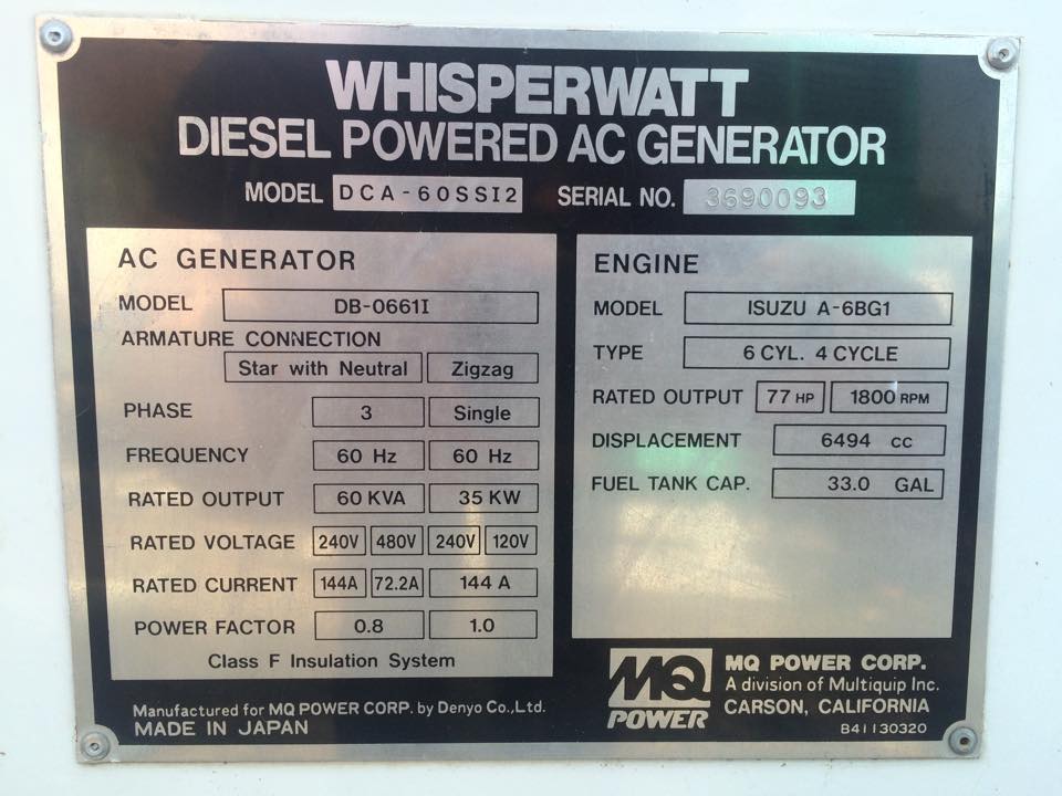Máy Phát Điện 60kVA (MQ – Nhật). Hàng mới về.