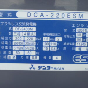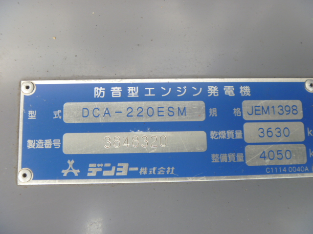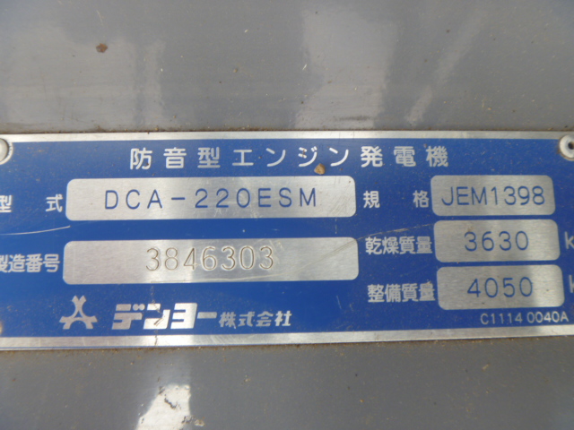 2) Denyo DCA220ESM#3846303 2011yr 4458hr